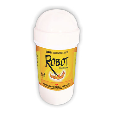 Robot acts on the nerve cells to suppress muscle contraction thus inhibiting the larvae from feeding within hours providing rapid crop protection. It also maintains control of a range of larval insects by contact activity with wet residues, but predominantly by ingestion activity.