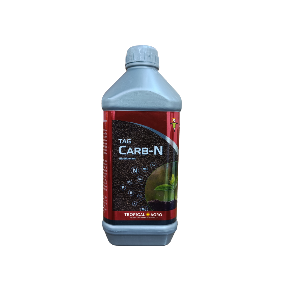 Tag Carb-N is a unique bio-stimulant containing protein hydrolysates from marine fauna. The product contains a minimum of 25% organic carbon, and 6% nutrients such as NPK along with other secondary nutrients and micronutrients which are essential for the healthy growth of plants. This product helps maintain the pH value of soil. Application of Tag Carb-N in the soil will help the proliferation of beneficial soil microbes, as it converts organic waste into rich organic matter resulting in the attraction of more earthworms. Increased soil microbes and earthworms help boost the quality and fertility of the soil, resulting in better shoot growth, root growth, and increased yields.