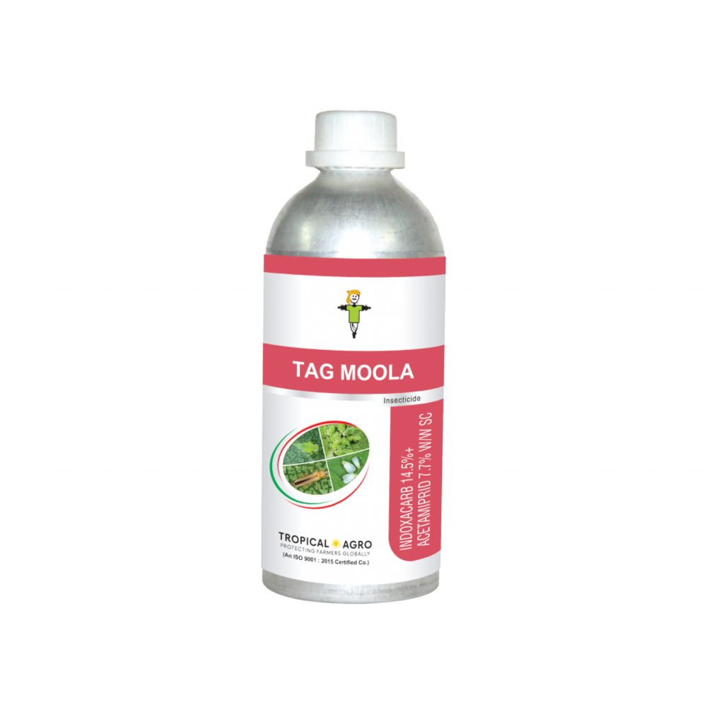 Tag Moola suspension concentrate is an insecticide used for the control of whiteflies ,bollworms ,thrips , fruit borer etc.